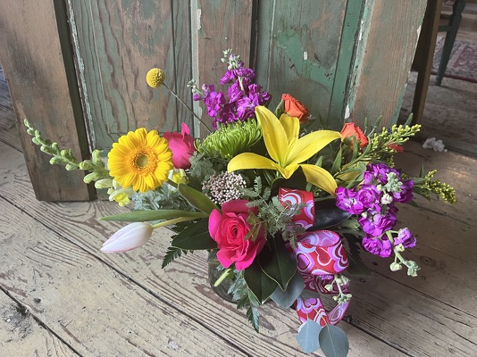 The perfect arrangement for your special someone who needs a loving reminder that spring is near! This arrangement features bright spring blooms and is situated in a cylinder or cube vase with a ribbon to tie all the colors together.